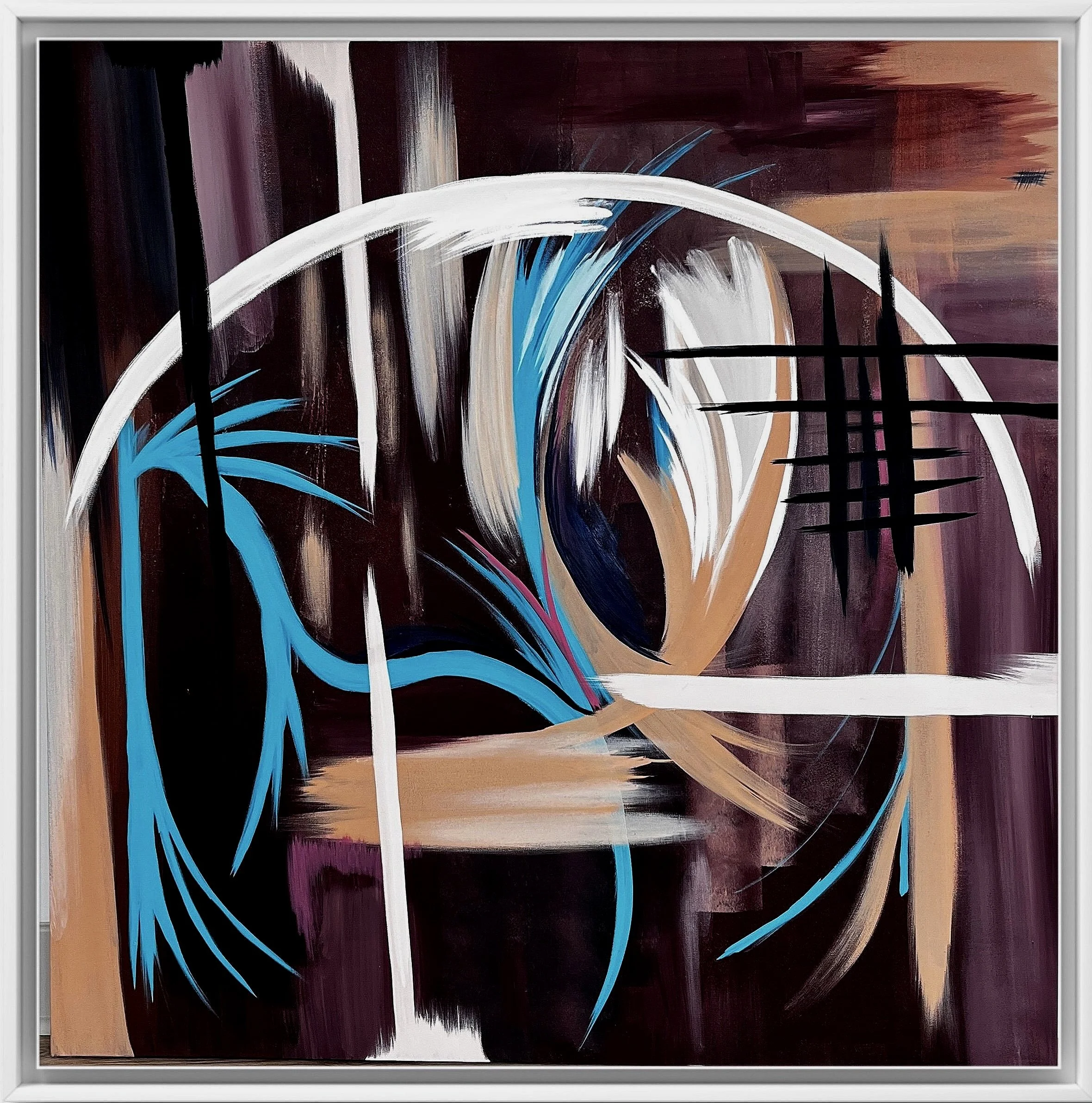 “Speak to Me” invites a sense of intimacy and spiritual dialogue through its fluid arcs, layered hues, and grounded yet expressive composition. The interplay of soft neutrals, electric blues, and deep maroon creates both movement and stillness, evoking the quiet yearning to hear something greater; a whisper of guidance, a divine response, or the echo of one’s own inner voice.